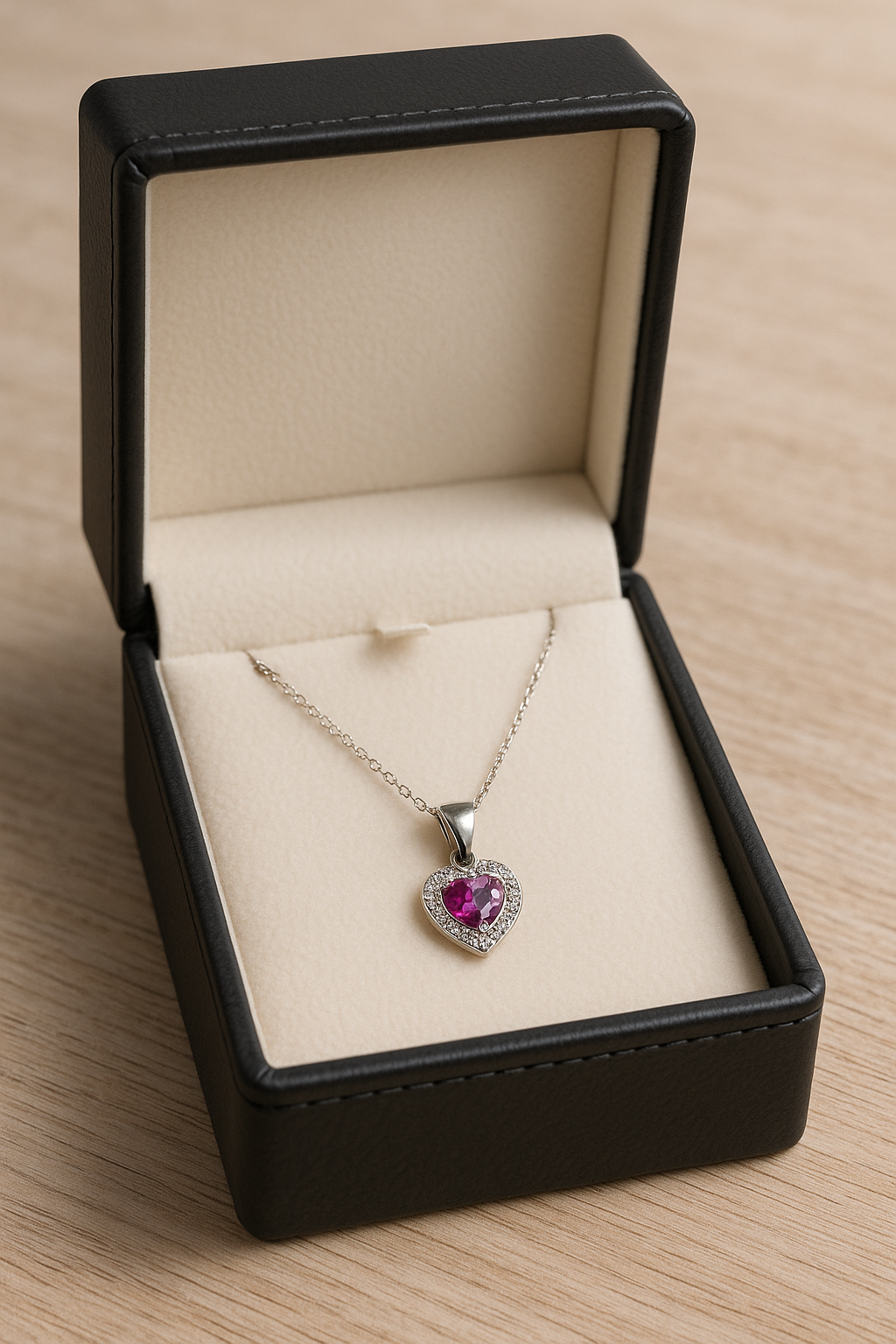 925 Ayar Gümüş Pembe Taşlı Kalp Kolye